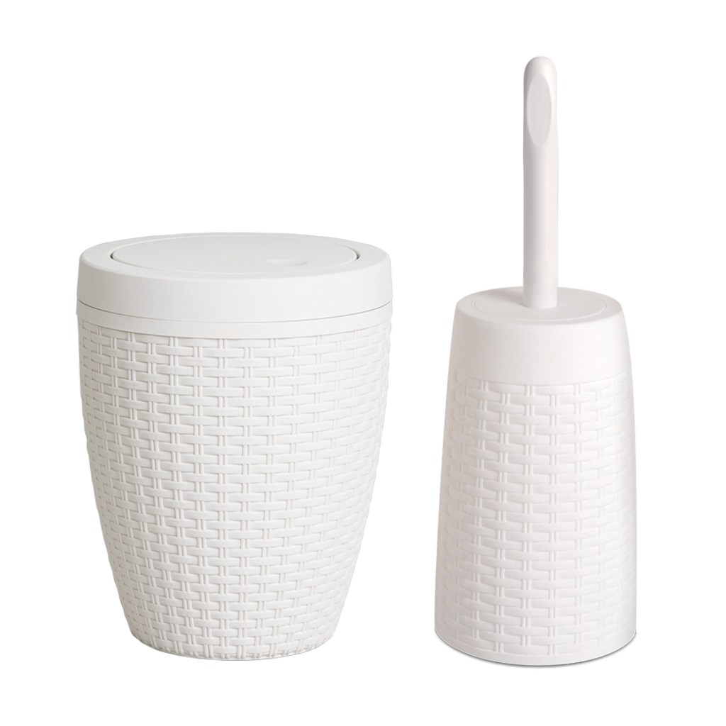 סט פח אשפה ומברשת אסלה, לחדרי האמבט והשירותים: הסט מוצע במגוון צורות – עגול, ריבוע, מלבן וטרפז, ובצבעים קלאסיים של לבן, פרגמון, חום ואפור. אפשר לרכוש את הפחים ואת מברשות האסלה גם בנפרד. המוצרים, המיוצרים מפוליפרופילן (חומר פלסטי קשיח), עמידים לאורך זמן וקלים לניקוי. מחיר סט 40 – 60 שקלים.