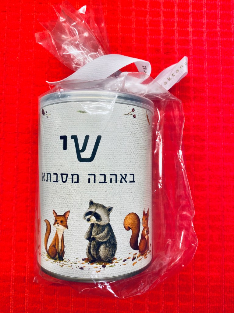 • Alcancía: Caja de metal cilíndrica de 8.5×11.5 cm, con tapa ranurada para introducir monedas. La caja contiene 44 velas de cera de colores. Después de usar las velas, la caja se convierte en una alcancía. Precio: 42 NIS.