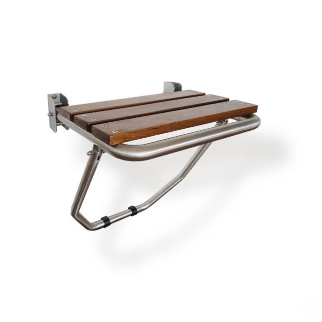 המושב המעוצב עשוי מעץ עמיד למים ומנירוסטה מוברשת ואיכותית, המותאמים לשימוש במים. הצירים עשויים מנירוסטה . המושב נוח, מתאים לכל גיל ופשוט לתפעול: כשרוצים לשבת מורידים את המושב – המוצמד לקיר – וכשאין בו צורך, מרימים.