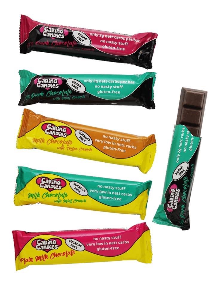 Los chocolates se preparan a mano, no contienen azúcar, gluten, conservantes ni colorantes artificiales. «Caring Candies» de Sudáfrica, aboga por productos saludables, importados por «Schneider Service and Marketing».