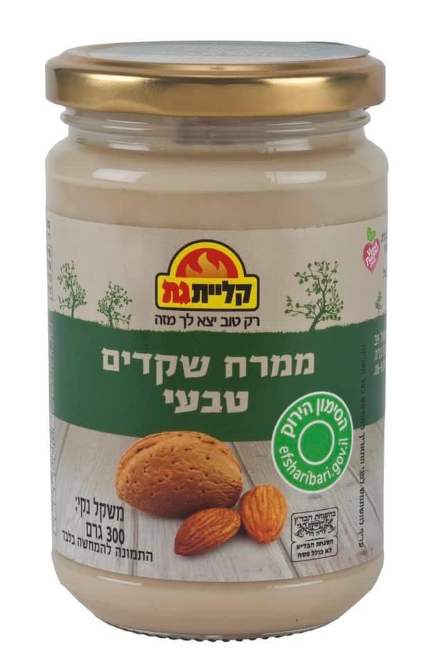 La crema de almendra natural de Kliat Gat se elabora 100% con almendras seleccionadas, sin azúcar ni sal añadidas, y es una buena fuente de fibra dietética. La pasta para untar es adecuada como sustituto de la harina y como complemento de la comida para bebés, así como para untar en bocadillos y tostadas, para cocinar y hornear.