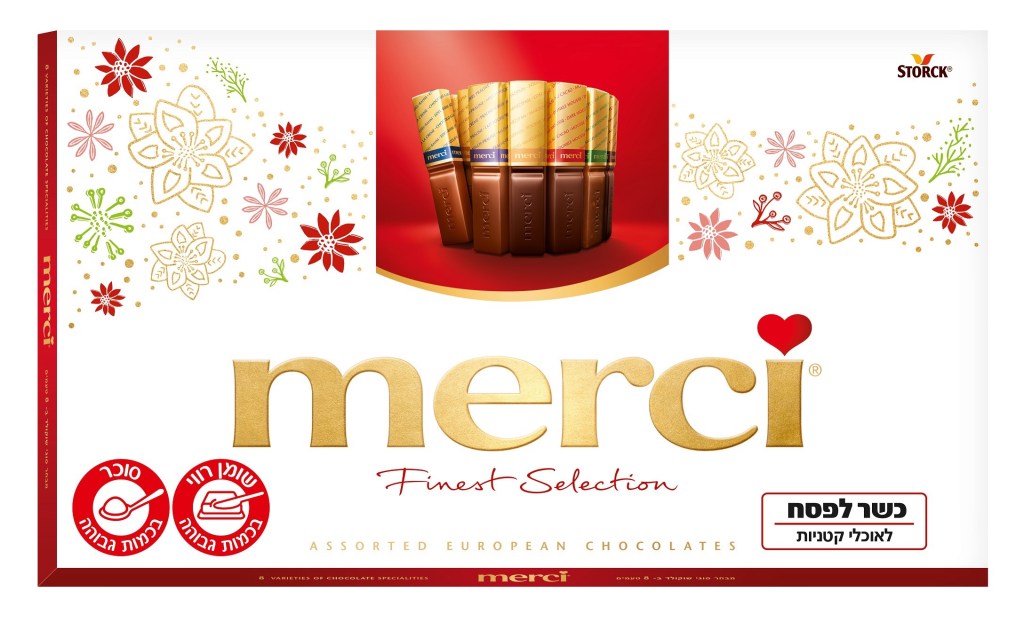 Los bombones festivos y kosher para Pesaj de la marca Merci, así como todos los productos de Leiman Schlüssel kosher para Pesaj, están disponibles en cadenas minoristas, tiendas privadas.