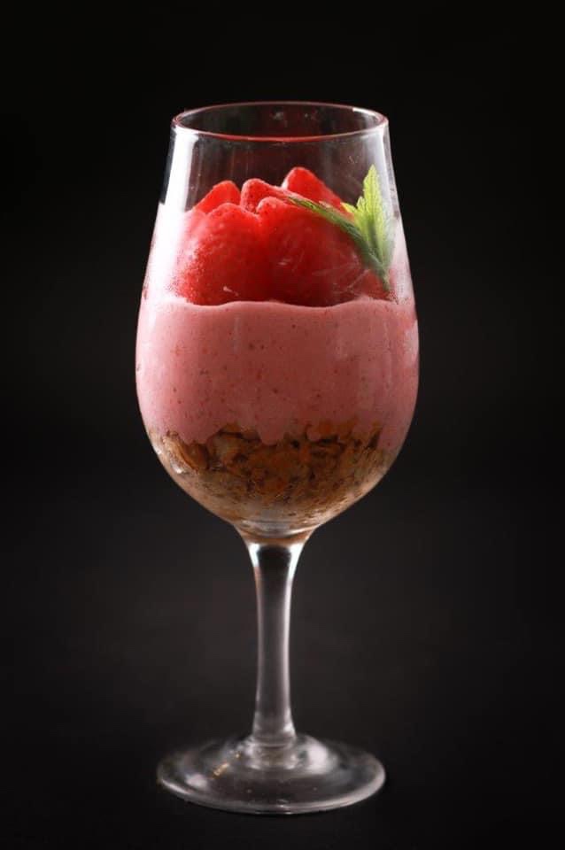 El fabricante de la marca de queso vegano Mashumashu nos brinda una receta buenísima para preparar un postre elegante de crema de frutillas vegana servido en vasos, especial para Pesaj, de la chef Abigail Meislik. El postre es espectacular en su belleza, fácil de preparar y para Leil Haseder!