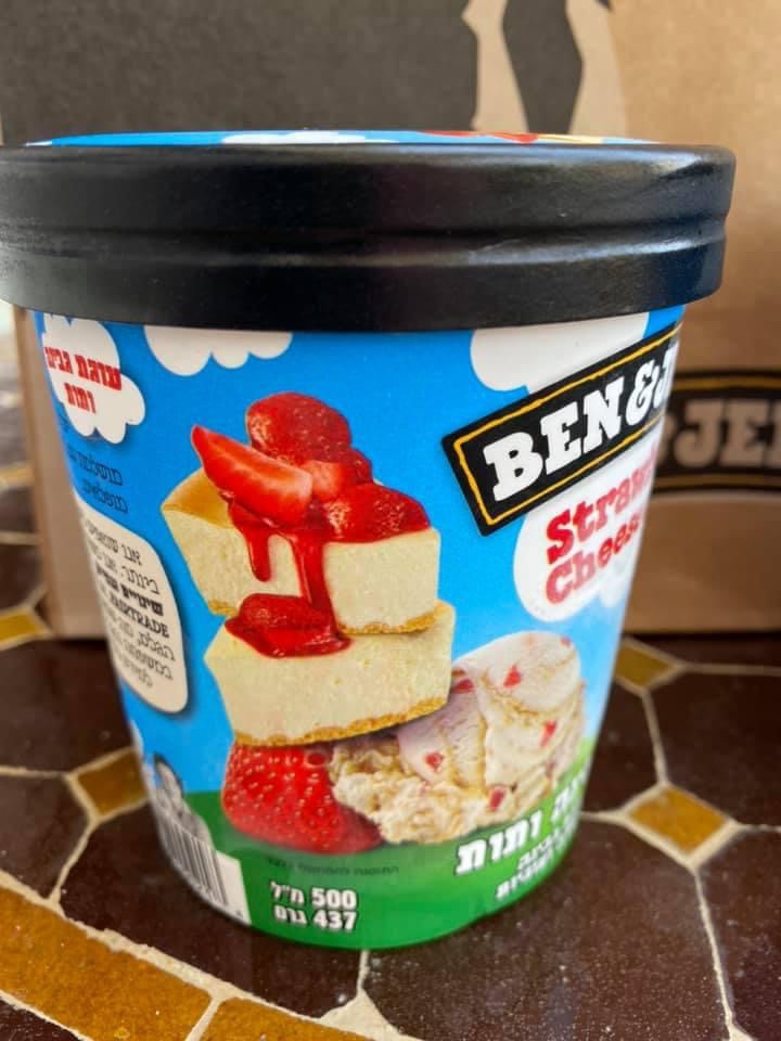 גלידת עוגת גבינה עם תות משווקת באריזת 500 מ«ל במחיר 24.90 ₪