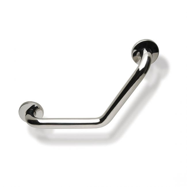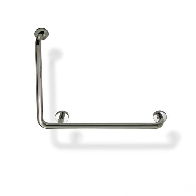 ♦ Tirador angular para baño y aseo: ancho 42 cm, distancia a la pared 12 cm. Acero inoxidable cepillado o brillante