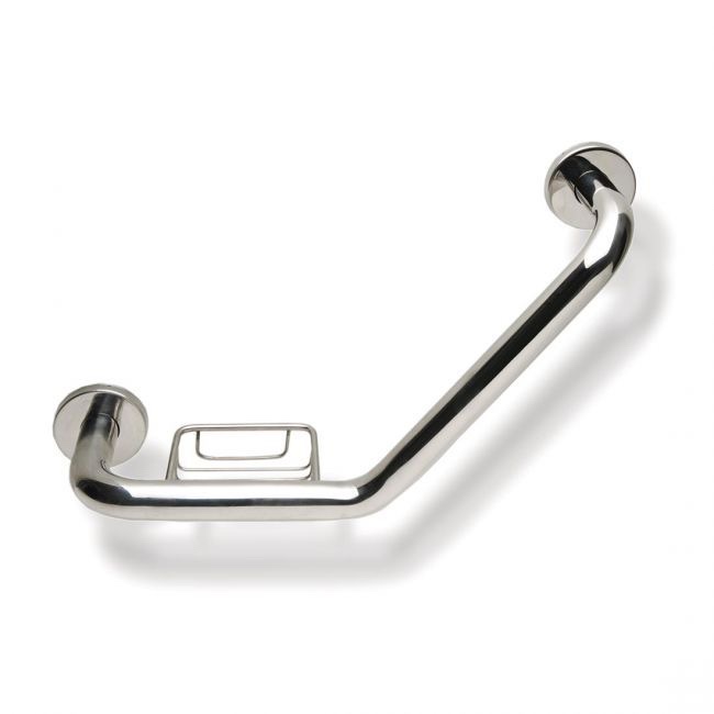 ♦ Asa de mano angular y jabón para el baño: 13 cm de profundidad, 42 cm de ancho. Acero cepillado sin manchas
