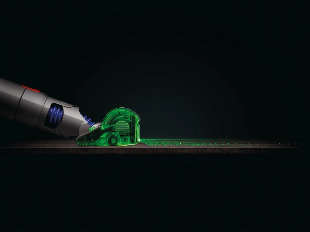 “Nuestras últimas aspiradoras utilizan tecnología láser adaptada para revelar el polvo oculto, integrando un láser de diodo en el cabezal del limpiador que se coloca con precisión en un ángulo de 1,5 grados, a 7,3 mm del suelo para crear el mejor contraste entre el polvo y el suelo. No creemos que la detección sea suficiente, por lo que eliminamos, dimensionamos y contamos meticulosamente las partículas 15.000 veces por segundo utilizando un sensor piezoeléctrico acústico que convierte las vibraciones en señales eléctricas, mostrando con precisión el tamaño y la cantidad de partículas aspiradas en una pantalla LCD en el parte trasera de la aspiradora”.