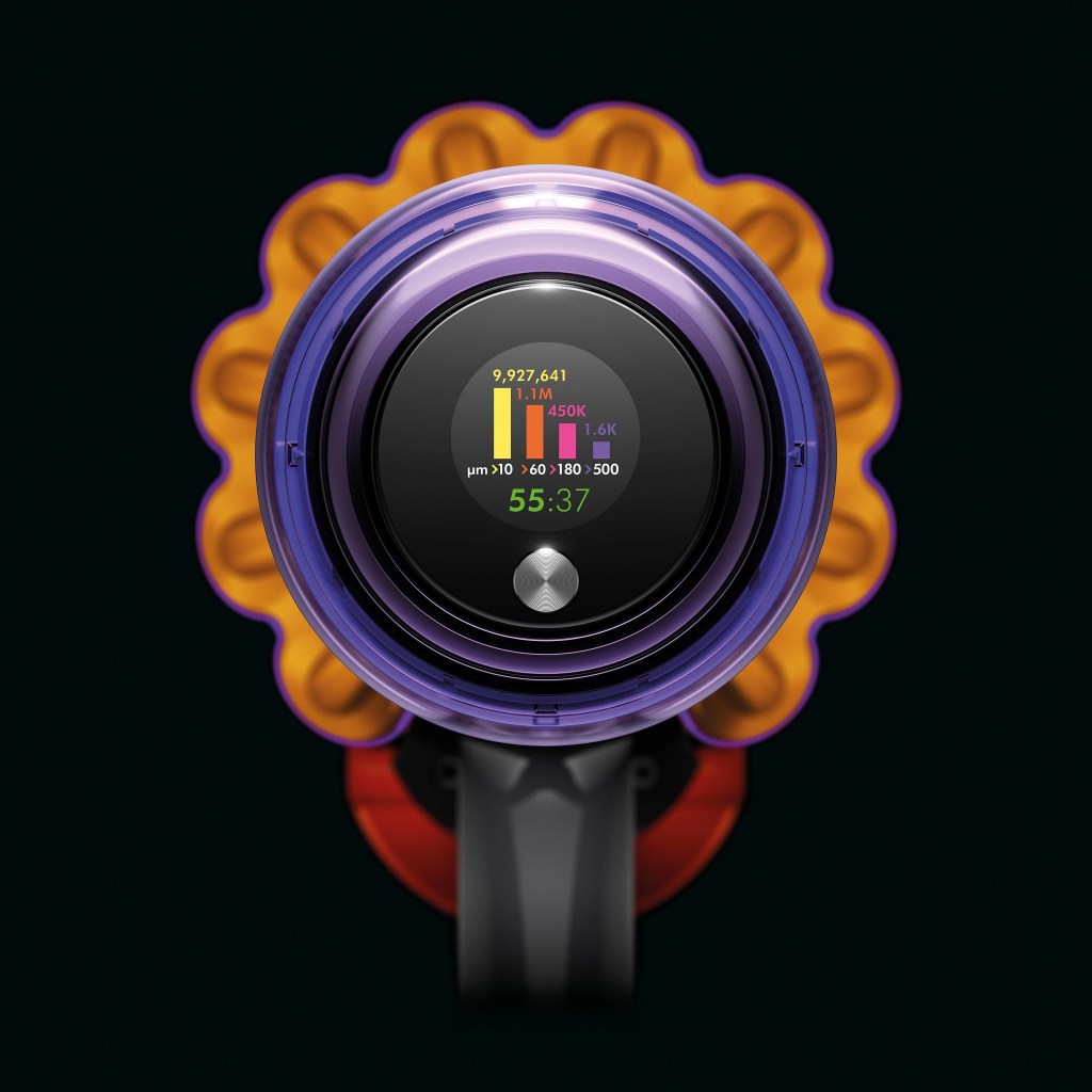 בעוד הלייזר מגלה את האבק המיקרוסקופי הזעיר ביותר, מהנדסי Dyson הבינו את הצורך האנושי בפיתוח טכנולוגי שיאפשרלמשתמשים גם למדוד ולספור את חלקיקי האבק הנשאב ולהציג אותם בזמן אמת תוך כדי הניקיון, כהוכחה מדעית לכך שהבית נקי באופן יסודי.