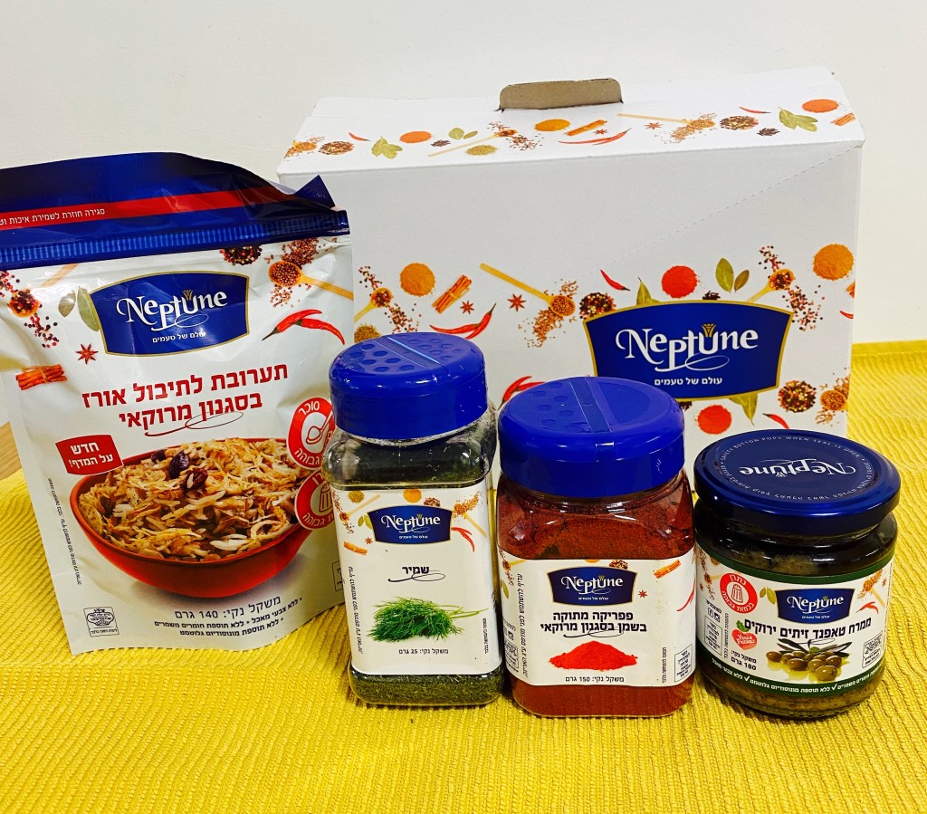 «נפטון» מציעה לשדרג כל מנה עם מגוון תבלינים ובהם תערובת תיבול לאורז מרוקאי, פפריקה מתוקה, טאפנד זיתים ירוקים ושמיר מיובש