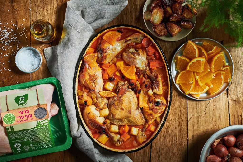 Of Tov nos ofrece una receta de pollo jugoso al horno con una salsa agridulce de naranjas. Gran plato principal, rico y excelente antes del ayuno.