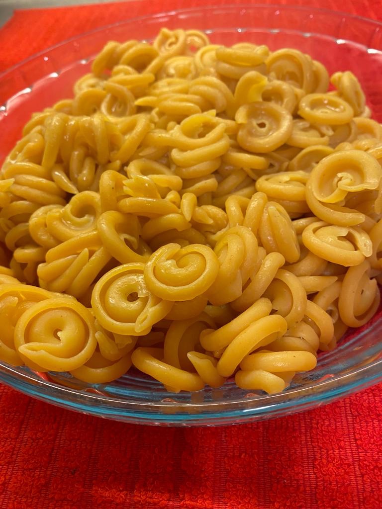«פוסיליני עדשים צהובות אורגניות«: עשויה 100% קמח עדשים צהובות אורגניות. מכילה 23 גרם חלבון ב-100 גרם