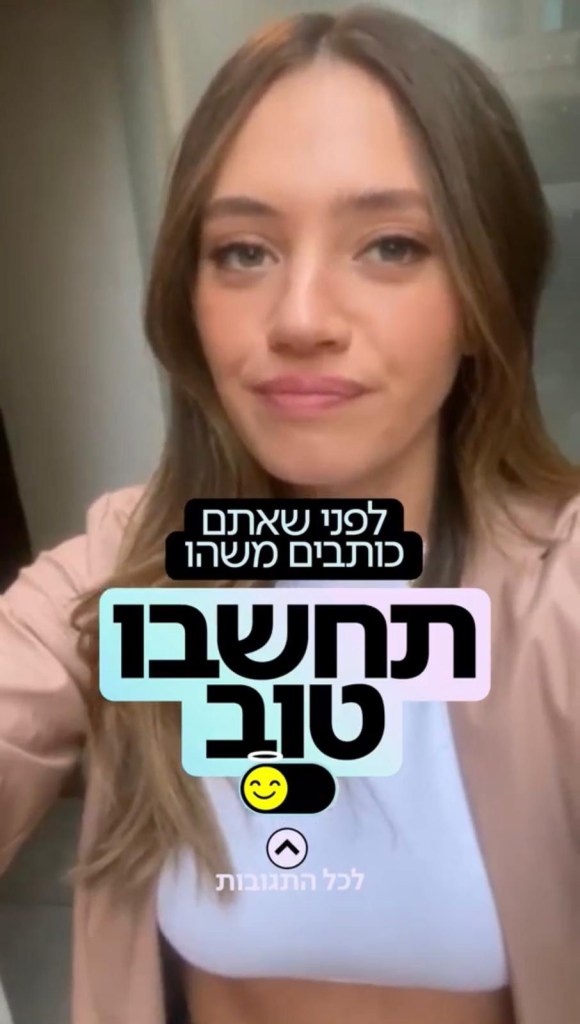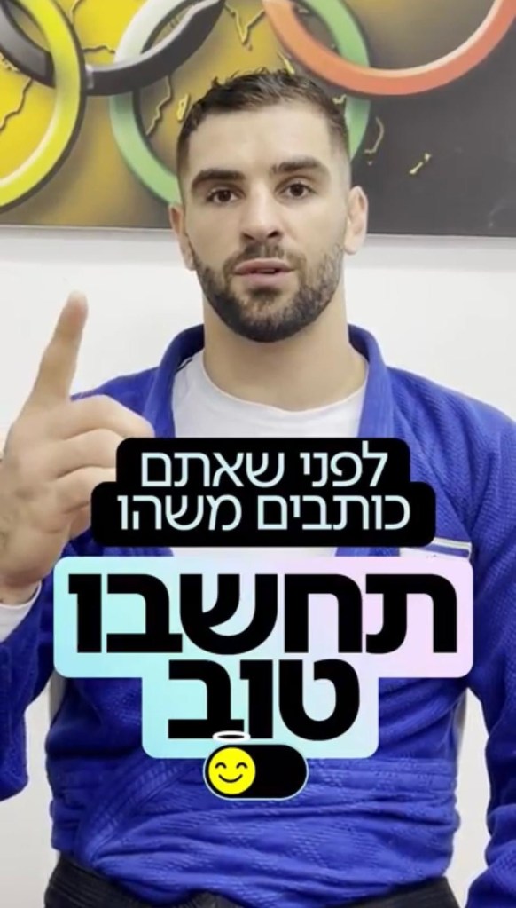 Hoy, la campaña «Piensa bien» para cambiar el discurso en línea, iniciada por el presidente Isaac Herzog y Meta (antes Facebook) en Israel, se puso en línea. Como parte de la iniciativa, decenas de celebridades y figuras públicas en Israel compartirán videoclips de ellos mismos leyendo las respuestas más hirientes que hayan recibido en línea, con las palabras ofensivas censuradas y superpuestas con palabras de refuerzo positivo. El propósito de la iniciativa es exponer a millones de seguidores la dificultad de leer respuestas desagradables, alentar a las personas a pensar dos veces antes de usar un lenguaje hiriente y tener pensamientos positivos antes de presionar «responder».