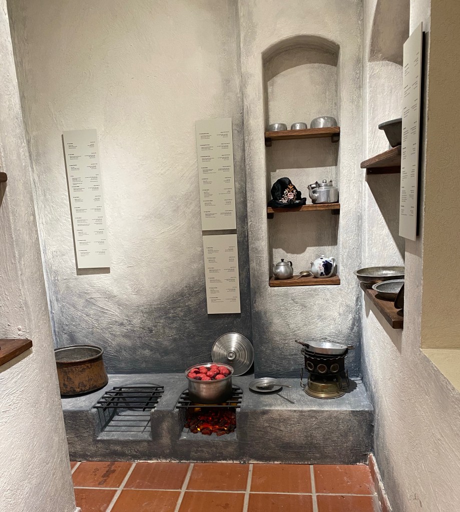 The kitchen is located next to the museum’s restored courtyard, through which the kitchen was accessed. This patio was open to the sky, surrounded by the different spaces of the house and from which one went up to the second floor by means of a staircase.