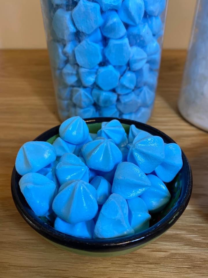 Mini Merengues con sabor a frutilla, vainilla, uva y bayas.