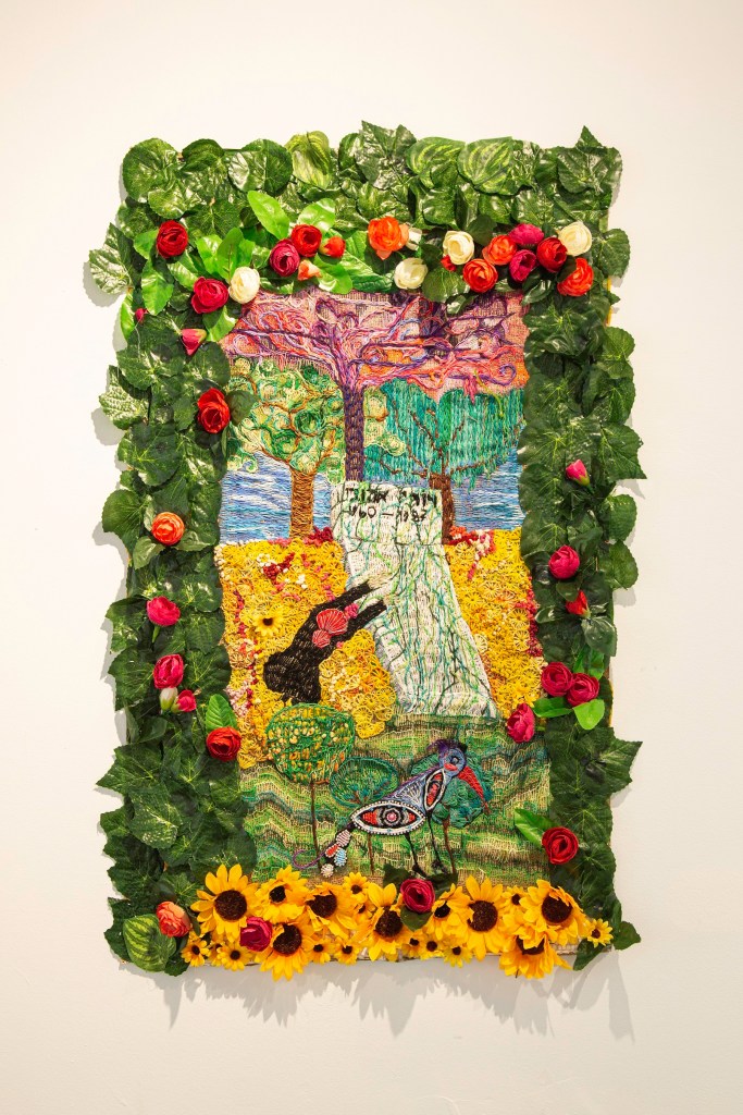 לפני כארבע שנים יונה אלטרס החלה לרקום את ציוריי בעלה המנוח והאהוב- ישראל, שצייר אלפי ציורים בשנותיו האחרונות. תהליך ריקמת הציורים היה ליונה תהליך מתמשך של נחמה, תפיסה בשאריות החיים ובזיכרון המחשבות והרגשות שלו שהתגלו לה כשהיא ׳בקרבתו׳ כל יום מחדש. בכל שנה, ביום השנה, יונה ומשפחתה עולים לקבר ואוחזים בעבודות הריקמה החדשות מראים וחולקים. בשנה האחרונה יונה אלטרס רקמה 26 יחידות ריקמה מיצירותיו של ישראל ז”ל שחוברו לכדי רקמה אחת גדולה ויצרו תוצר יוצא דופן של טכניקה שלרוב נעשית בקנה מידה קטן בהרבה