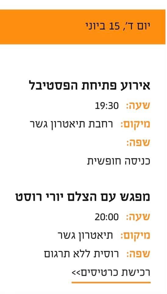 El festival tendrá lugar del 15 al 20 de junio. Durante el mismo, se presentarán varias producciones originales de Israel y el mundo en cuatro idiomas diferentes: hebreo, ruso, ucraniano e inglés.