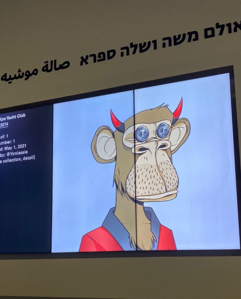 Future Positive )Nir Goeta & Rotem Goeta( – Tomer Mor Joseph – Peter Spacey & TEC (Omer Luz, Dylan Roscover and Anita Kucharczyk – Avraham Pesso – Ofir Liberman – Eyal Yehowa Gruss – Khen Shish – Gilad Edelstein – Deborah Fischer, Yarden Colsey, Ofer Kantor – Doron Golan – Daria Durand – Angelika Sher – Yambo & Somei Sun – Kfir Ziv X NFT Tel Aviv – Lidar Farjun – Moran Victoria Sabbag – Matty Mariansky – Nitzan David Hamerman – Kafein – Ron Guetta – Noa Gana and Gal Kuflik – Ran Slavin – The Knocks – Pak – DEDE – Itamar Stamler, Lior Zalmanson – Geldz, ZOZ, and GURION – Sarah Meyohas – Rosie Gibbens – Tamar Karavan – Chat Des Rues – Udi Cassirer – Scan The City – Smadar Lomnitz – Cookie Moon – Thomas Paquet – Eduardo Kac – Desperate Ape Wives – Bored Ape Yacht Club – CryptoPunks – LIŔONA