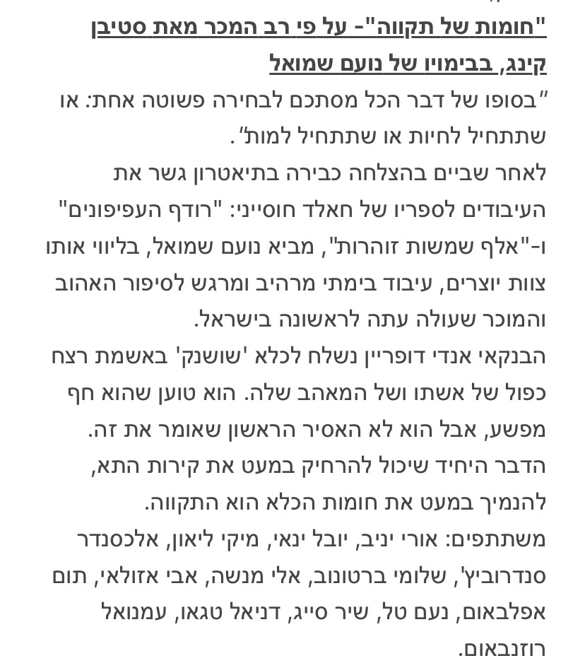מאיר שלו, טולסטוי, סטיבן קינג, יובל נח הררי ודויד גרוסמן ועוד