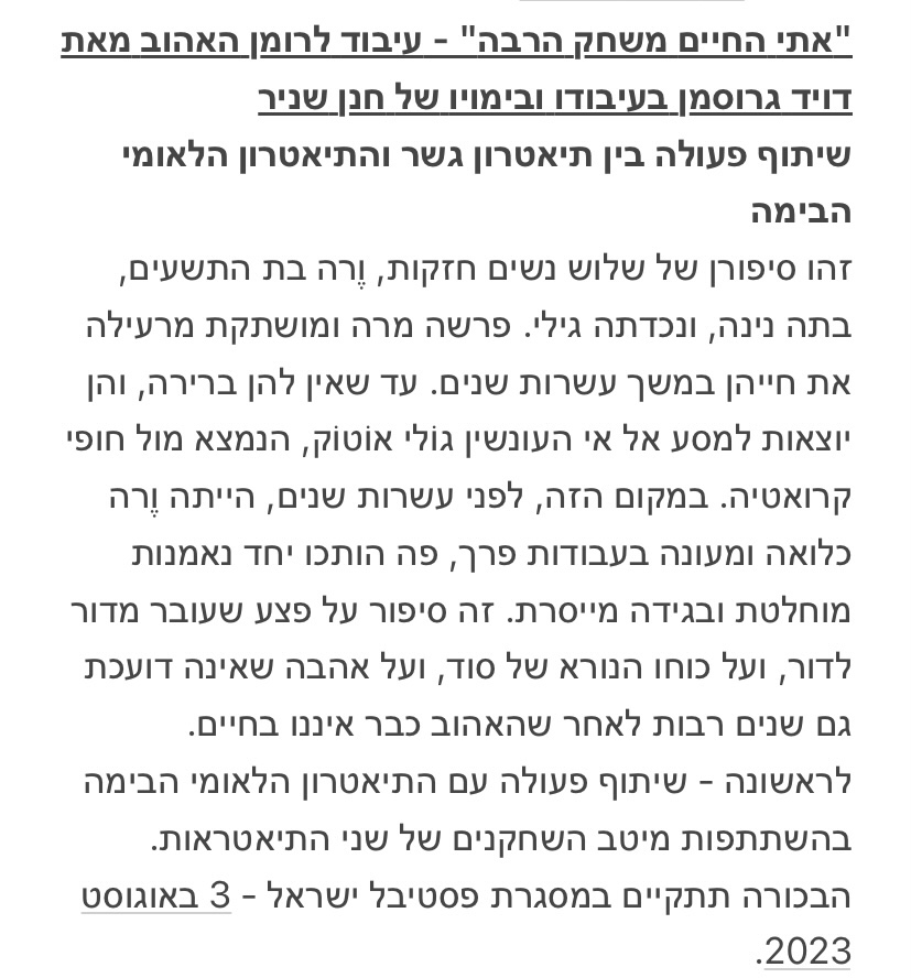 תיאטרון גשר גאה להציג את רפרטואר 2022-2023: