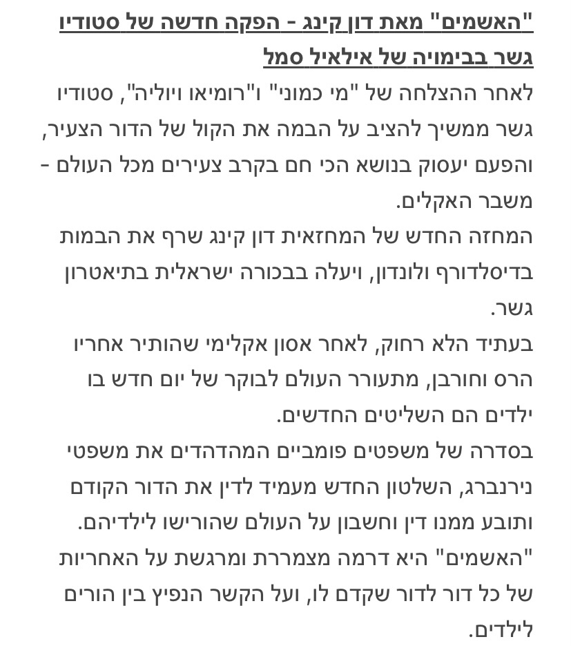 ההצגות והזמנת כרטיסים באתר או בטלפון 03-5157000
