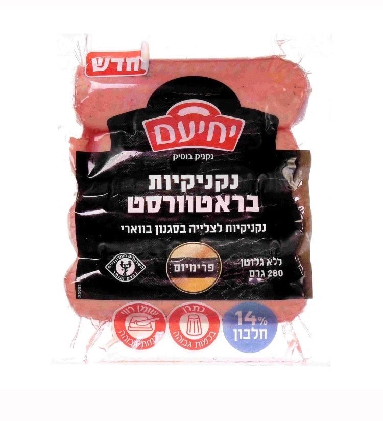La serie de salchichas premium de “Yechiam” incluye chorizos estilo argentino con textura carnosa y sabor picante, salchichas estilo francés con textura carnosa y fuerte aroma, y salchichas estilo americano, 100% carne de res premium según la receta y conocimiento de la empresa subsidiaria de Yachiam en EE. UU. B, A&H.Todos las salchichas se elaboran a partir de cortes de res, pavo y pollo de alta calidad, de amplio diámetro con textura carnosa y excelente sabor, libre de gluten y con un alto nivel de proteína (alrededor de 14-16 %). Las salchichas se comercializan en paquetes de g, 4 unidades grandes por paquete y forman parte de la categoría de salchichas boutique de Yechiam, que incluye una variedad de delicias de carne de estilo internacional que incluyen salchichas de Saarwald, prosciutto, salami francés, salami de Hertz y más.