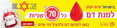 Information about blood donation sight: at MDA Website:http://www.mdais.org/dam and over the phone: 03-5300400