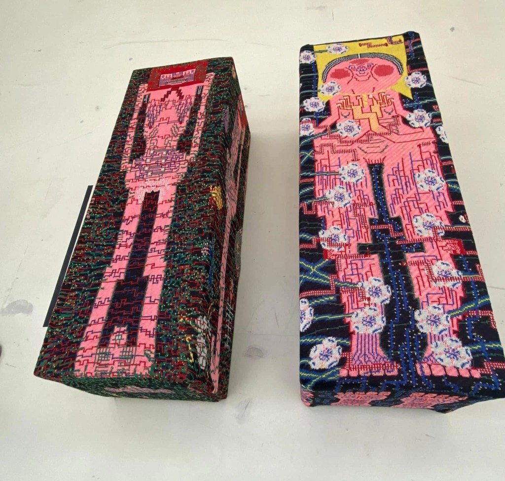 La leyenda siria El mono en el telar habla de un mono al que se persuade para que aprenda a tejer después de que su dueño aclara lo que le sucedería si no lo hace. Es uno de los siete cuentos, leyendas populares y mitos relacionados con la artesanía textil en los que se basan las obras expuestas de Batia Kolton (n. 1967, Israel) y Roni Fahima (n. 1978, Israel), incluidos textos de los hermanos Grimm, S.Y. Agnon, mitología nórdica y otros.