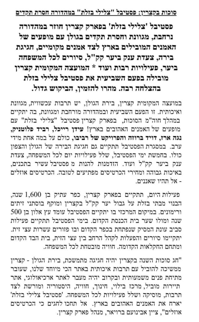 סוכות בקצרין: פסטיבל «צלילי בזלת» במהדורה חסרת תקדים
