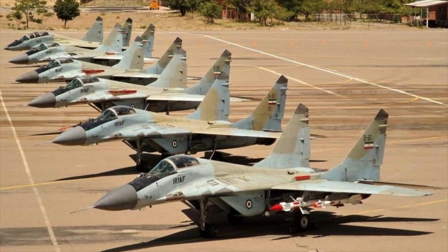El variopinto armamento de producción local como extranjero, le dan un gran poder de fuego y movilidad. Sus cuadros han sido marcados por la guerra de 1980-88. La Fuerza Aérea (unos 50.000 efectivos), tiene como material más moderno, los cazas Mig 29, recibidos a fines de los 80 de Rusia, el resto es una colección de material de origen occidental, modernizado y recuperado por la industria local. El gran esfuerzo realizado le ha permitido a Irán fabricar misiles aire aire, aire tierra, municiones, repuestos, fuselajes, aviónica, y hasta motores. Esto permitió que un puñado de aviones F 14 Tomcat, sigan volando.