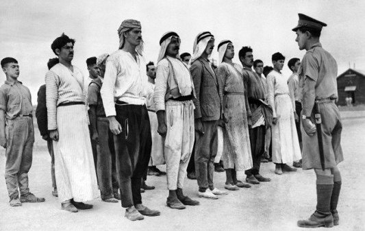 Según los encargados del voluntario del ejército británico, el 29 de Julio de 1941, el número de voluntarios árabes llego a 4.000. 5Instructor británico con reclutas árabes. El mandato británico (Ceuta desconocida)