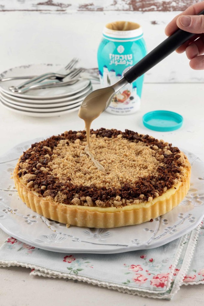 El fabricante de tahini «Turkiz» nos brinda una receta especial y deliciosa para la festividad de Shavuot: pastel de queso con crumble de tahini. Un bizcocho espectacular con tres capas de kelat, un relleno dulce de queso y encima un crujiente y delicioso crumble de tahini que le da al bizcocho un rico sabor parecido al halva. Es un festín ‼️