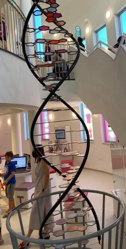 En la exposición de genética entendemos cómo se transmiten los rasgos de generación en generación y qué causa las diferencias entre diferentes personas. Párese frente a la enorme doble hélice del ADN y comprenda qué es un «guión oculto»