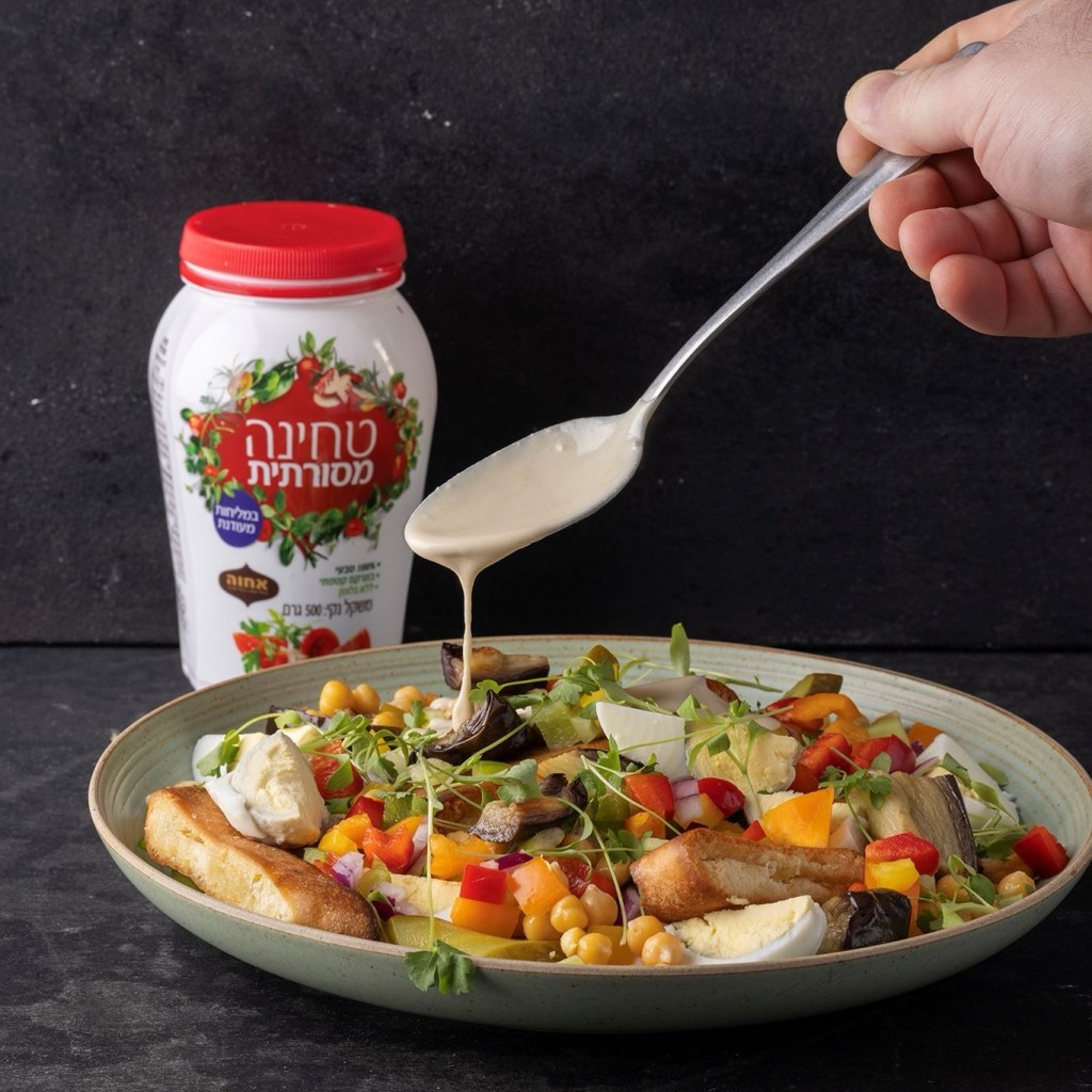 La empresa «Achva», principal productora de tahini y chalva en Israel, presenta para las vacaciones de invierno una receta deliciosa de su plato favorito: la ensalada Sabih con tahini tradicional. Fácil de preparar, rica en verduras asadas y frescas servidas con garbanzos y huevos duros y, sobre todo, un tahini generosamente aterciopelado. La receta usa Tahini crudo de Achva, de primera calidad, elaborado con un método tradicional con molienda fina y salinidad refinada y con la textura y sabor del tahini tradicional.