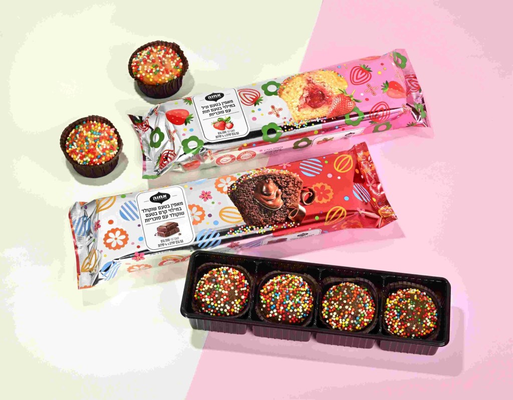 מאפין בטעם שוקולד במילוי קרם בטעם שוקולד עם סוכריות ומאפין בטעם וניל במילוי בטעם תות עם סוכריות יימכרו באריזת 200 גרם הכוללת 4 יחידות מאפין במשקל 50 גרם ליחידה • המאגדות החדשות מצטרפות למגוון המאפין באריזה אישית של «אחוה», הנחשבים למוצרים הנמכרים ביותר בתחום דברי המאפה של המפעל