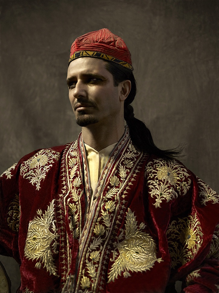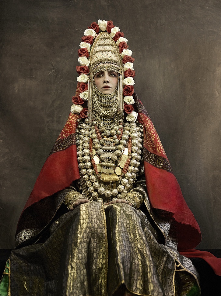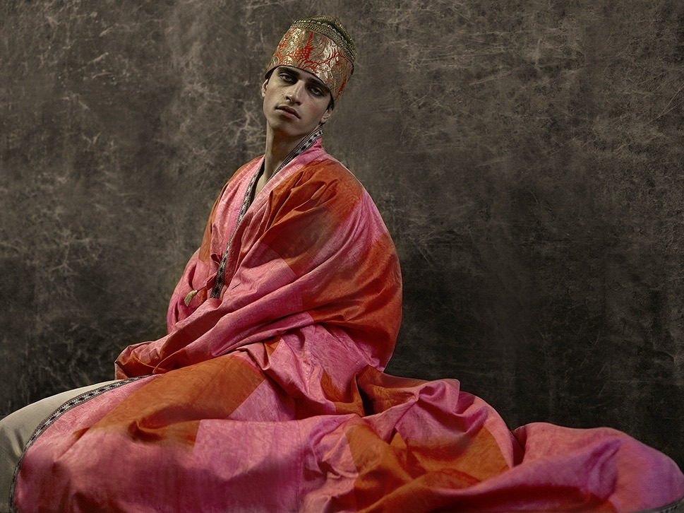 Kyris, one of Europe’s most prominent fashion and art photographers, is known for a dramatic photographic style inspired by Renaissance and Baroque painting, and characterized by dramatic lighting, chiaroscuro, complex theatrical compositions, careful staging and a rich palette. In the current exhibition, he offers an innovative approach that relates to ancient traditions, bringing the historical costumes to life by photographing them and then manually embroidering details upon the printed photographs.
