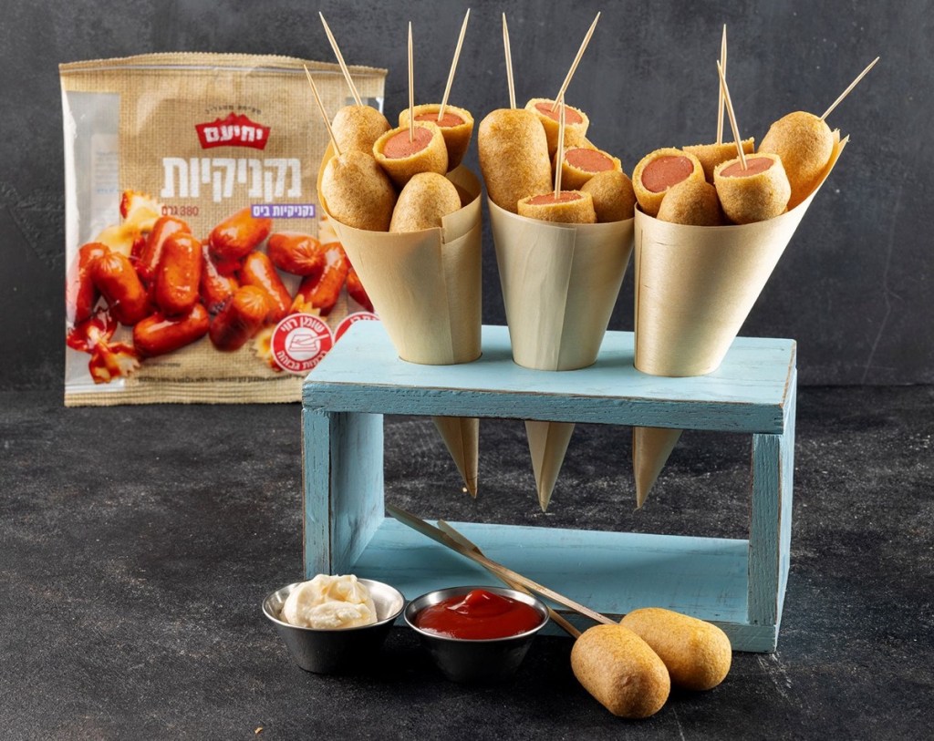 Receta gentileza de Yehiam, productora de embutidos, salchichas y pastrami del kibutz Yehiam, en la Galilea occidental, receta original y deliciosa del clásico snack americano: Mini Corn Dogs.