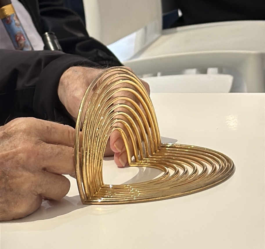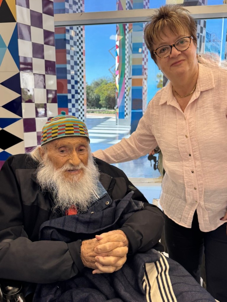 Yaacov Agam, de 97 años, es el artista israelí más reconocido en el mundo. Su obra es considerada revolucionaria y es uno de los fundadores del arte cinético, basado en el movimiento de formas en el espacio. Sus creaciones exigen que el espectador se mueva a su alrededor, con ellas y dentro de ellas. Cambian según la posición y la mirada del observador, y reflejan la constante transformación de la realidad. Sus obras se exhiben en exposiciones y colecciones de los museos más importantes del mundo, entre ellos el Museo de Arte Moderno (MoMA) y el Guggenheim de Nueva York, el Centro Pompidou de París, entre otros. Asimismo, sus obras están instaladas en lugares emblemáticos como el Palacio del Elíseo en París y la Casa Blanca en Washington. Entre sus creaciones más conocidas en Israel se encuentran la fuente “Agua y Fuego” en la plaza Dizengoff, la fachada del Hotel Dan en Tel Aviv, y “Dieciocho escalones”, una escultura cinética en el Jardín de Esculturas del Museo de Israel, entre otras.
