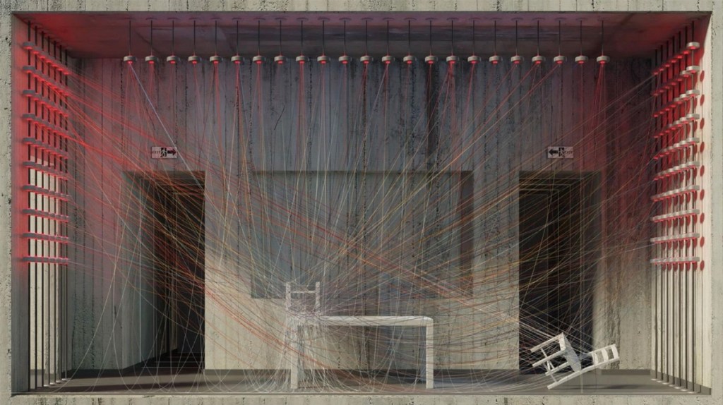 בעבודתו החדשה למוזיאון תל אביב לאמנות, שהרבני הולך צעד קדימה ומערב את הצופה באופן אינטגרטיבי בתוך היצירה. הוא יוצר בין הצופה ליצירה מערכת יחסים הנעה במנעד שבין דיגיטלי למוחשי. היצירה מזמינה את הצופה להפעיל את הגוף, ובאמצעות המכשיר הנייד «לזרוק» חוטים על המסך. החוטים משתלבים ומסתבכים זה בזה, נקשרים לכיסאות הניצבים על שולחן, ובעזרתם ניתן להוריד את הכיסאות לרצפה ולייצב אותם. הכיסא, מוטיב חוזר בתולדות האמנות, מופיע רבות ביצירותיו של שהרבני, ומייצג בהן את מקומו של האדם בתרבות ואת נוכחותו בחברה. כאשר הכיסא אינו מאפשר ישיבה, הוא מרמז על היעדרות האדם (ואפילו על הדרתו) ועל השתלטות הטכנולוגיה על הסביבה