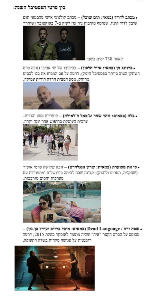 שרון סטון, לורנס בנדר, תום שובל, ערן ריקליס, מחווה לאלון אבוטבול, תכנית של סרטים עלילתיים ותיעודיים ישראלים בולטים ומפגשים עם יוצרים ואנשי קולנוע מישראל