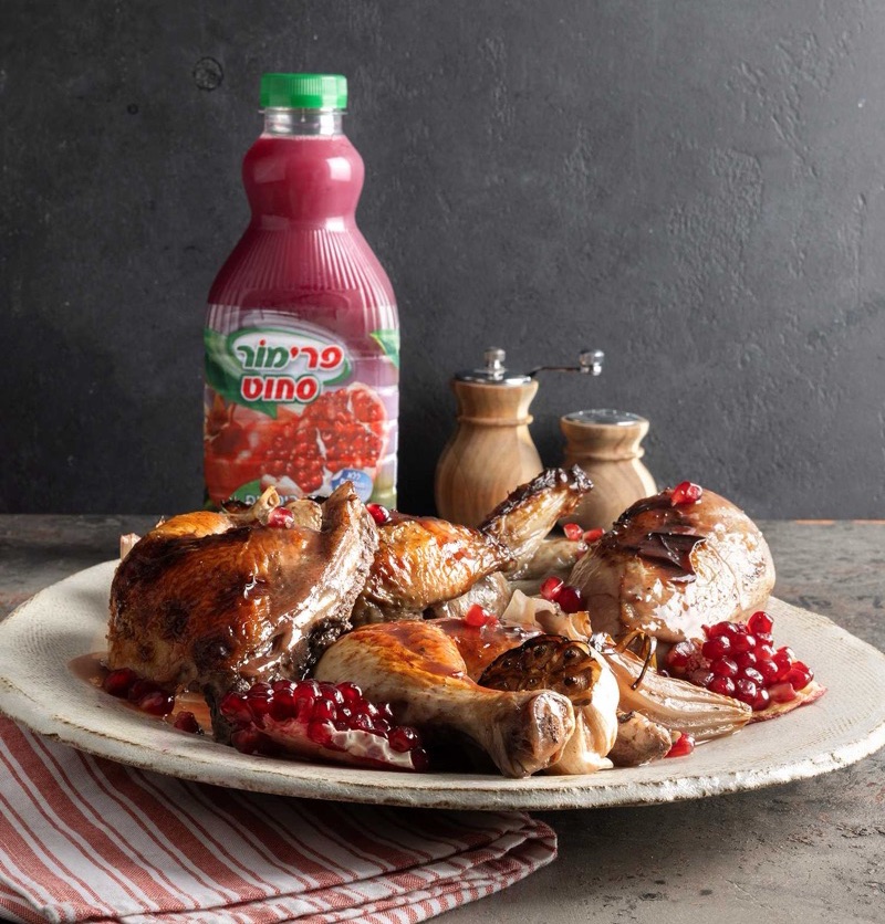 Se trata de una armonía de sabores especialmente lograda, entre una salsa ligeramente dulce y delicada, elaborada con silán (jarabe de dátiles) y jugo de granada de calidad, que se integra perfectamente con cebolla y ajo caramelizados. Juntos crean una profundidad de sabor que aporta al pollo una textura suave y un aroma especial. El uso de jugo de granada natural añade una nota frutal sutil que realza la experiencia gastronómica. El resultado es un plato vistoso, fácil de preparar y perfecto para la noche del Seder.