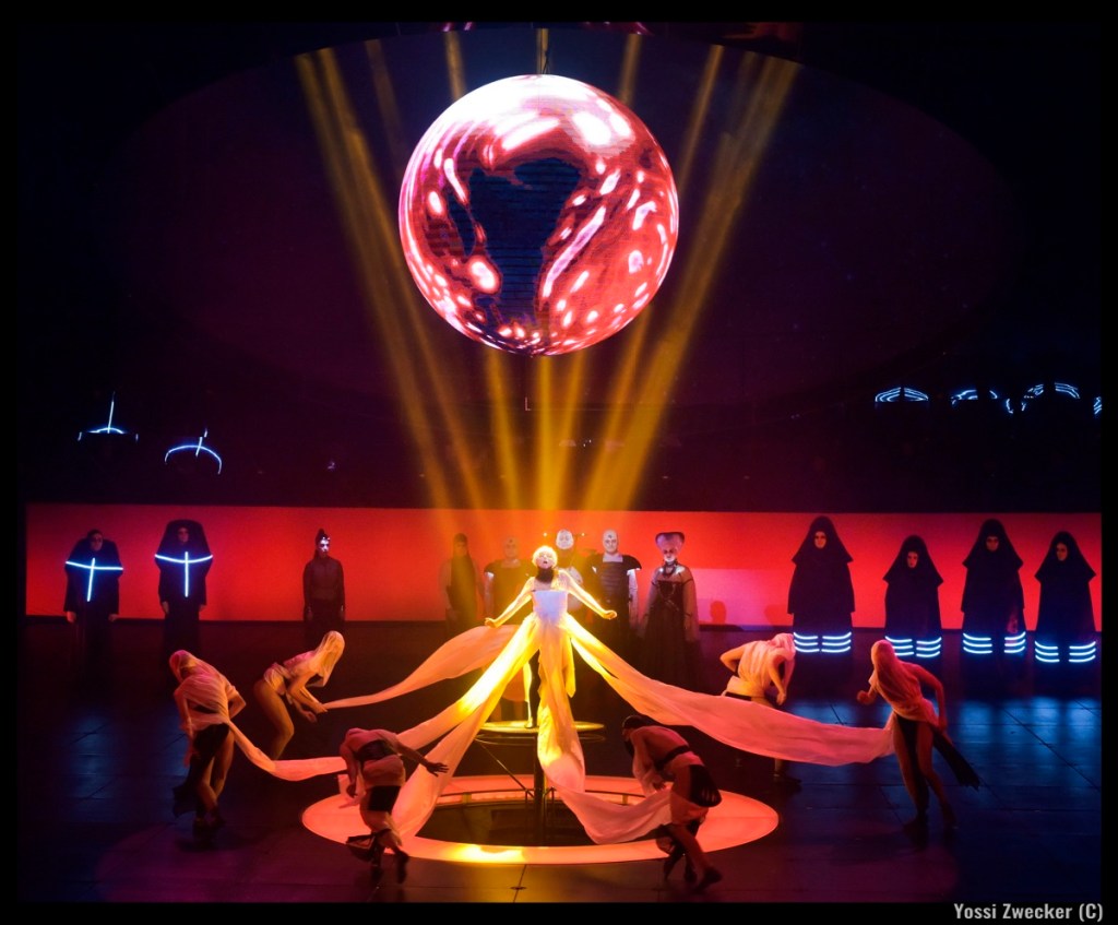 El equipo creativo incluye al escenógrafo Eran Atzmon, la diseñadora de vestuario Orna Smorgonsky, el videoartista Yoav Cohen y el diseñador de iluminación Bambi Bueno. En este mundo casi distópico, el uso del video da vida a la luna como una presencia inquietante en escena.