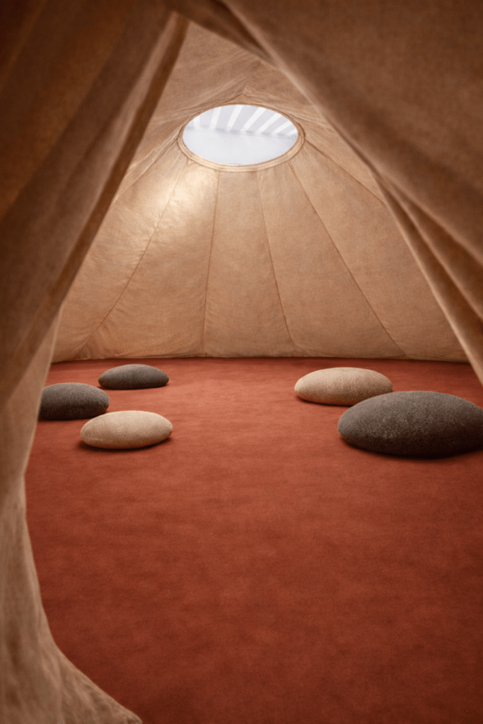 נגה אור־ים מציגה מיצב סאונד בשם משיב נפש, הנחבא בין יריעות בד של אוהל ארעי. היא מציעה למבקרים לשהות במרחב אינטימי, תוך האזנה לדיאלוג גלוי לב עם אביה ותרגול מדיטטיבי פנימי